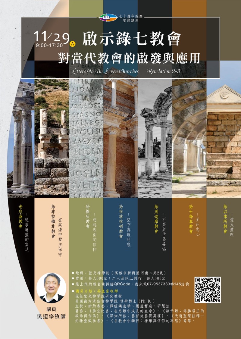 11/29 (六) 【啟示錄七教會對當代教會的啟發與應用】聖經講座|吳道宗牧師