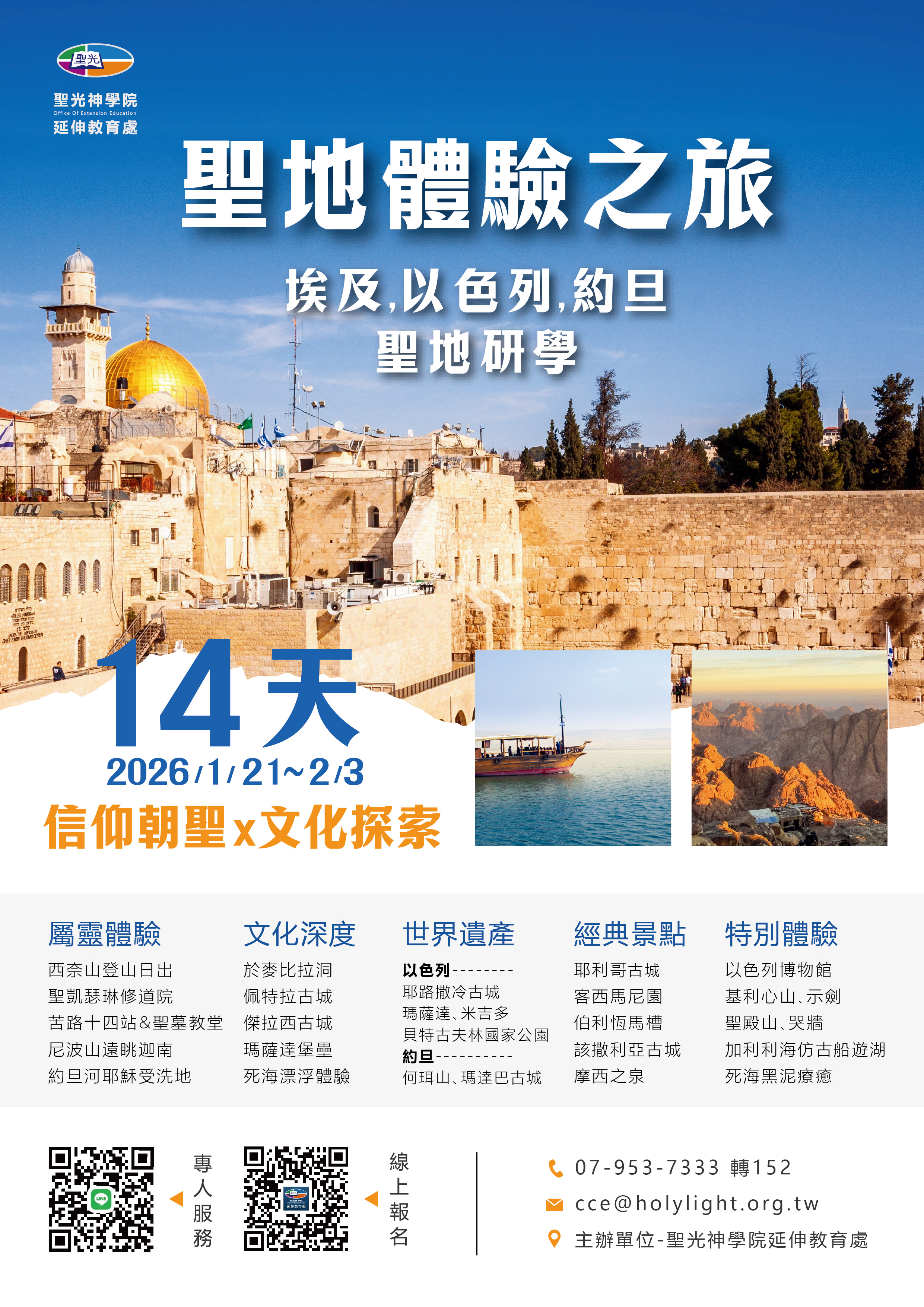 聖光神學院舉辦的聖經體驗之旅,將由陳吉松院長領隊與講解